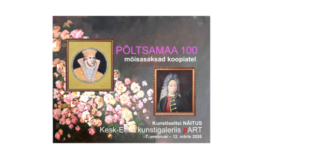 AVAMINE: 7. veebruar kell 14 Kesk-Eesti kunstigaleriis pART avatakse Kunstiseltsi näitus, mis on pühendatud Põltsamaale linnale ja selle ajaloole. 11 autorit, 18 erinevat tööd. Näiteks Nikolai Sergejevitš Gagarin (vürst), Aleksei Grigorjevitš Bobrinski (krahv), Liivimaa kuningas Magnus ja palju teisi.  Avamisele ootame kõiki! Näitus jääb üles 12. märtsini.