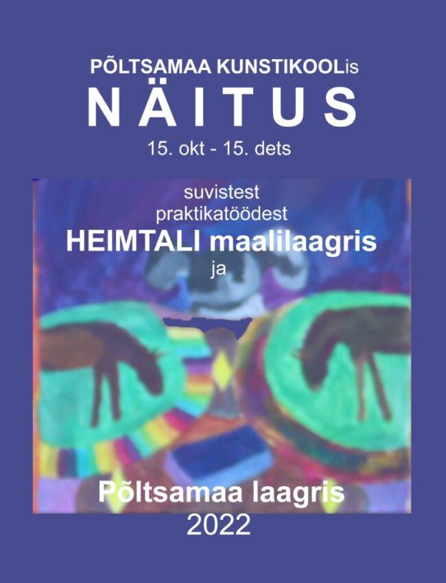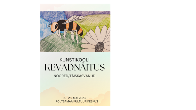 Kunstikooli KEVADNÄITUS on avatud Põltsamaa Kultuurikeskuses 2. maist. Näitus on üleval mai kuu viimase pühapäevani. Näituselt leiab kunstikooli õpilaste kui ka täiskasvanute töid. Igal juhul on uudistamist väärt!